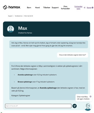 Til høyre vises et eksempel på en slik løsning som ble utviklet for Hamax på www.hamax.no